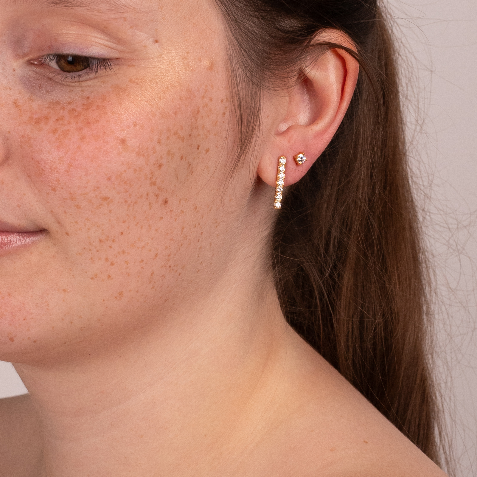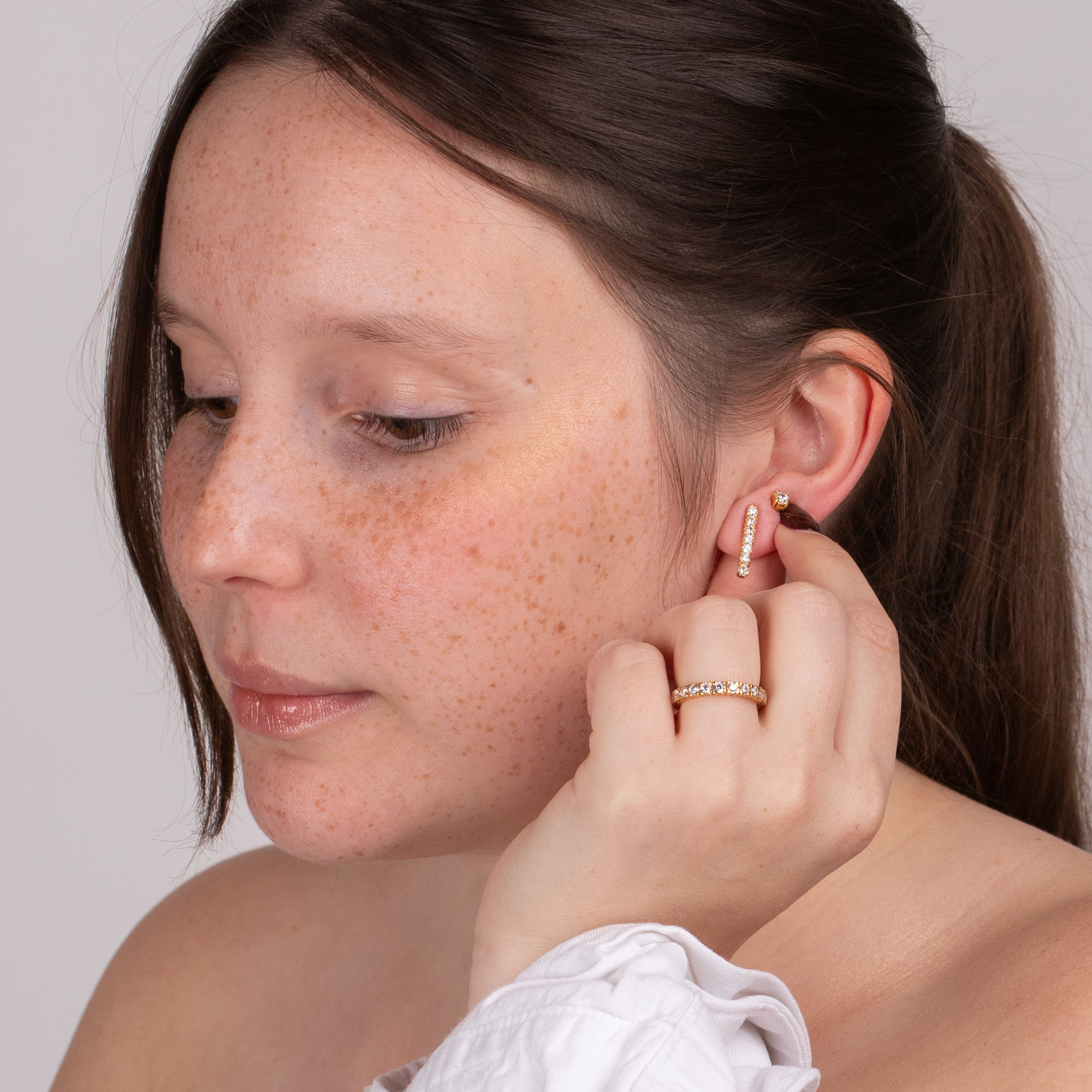 Brincos articulados em prata plaqueada a ouro, pérolas barrocas e zircónias ou granadas