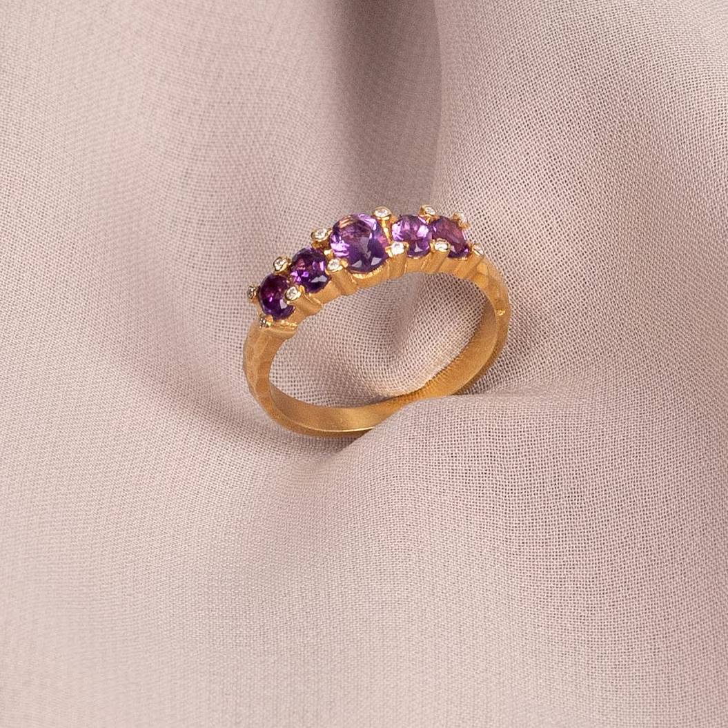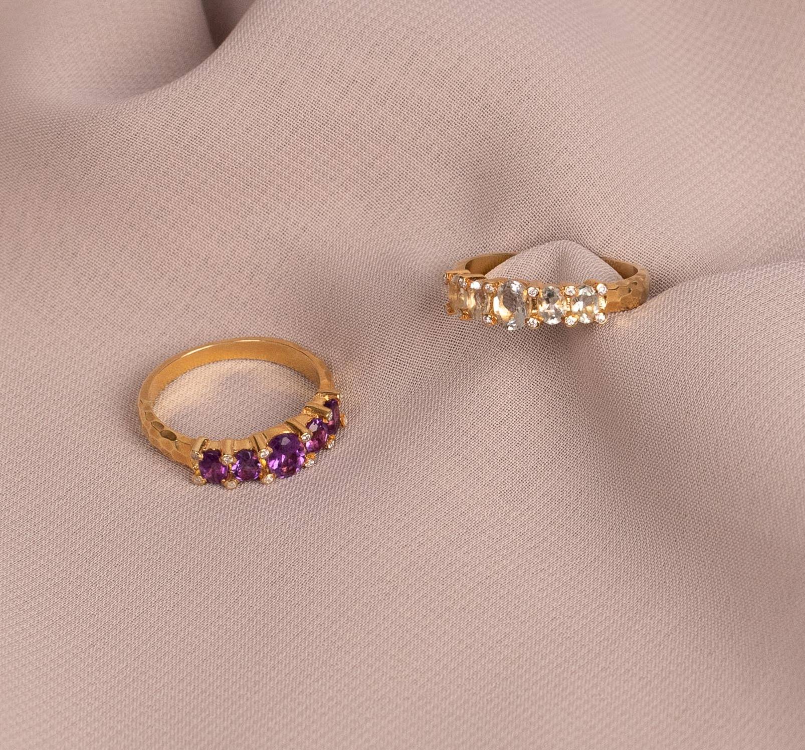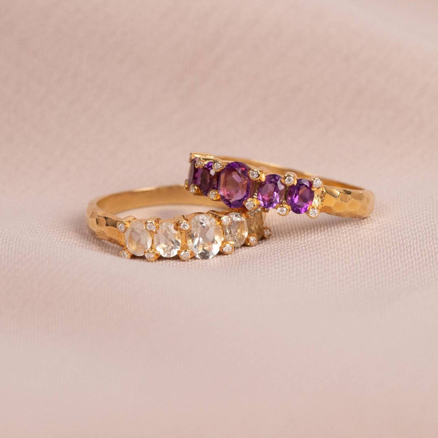 Disponível em ametista com diamantes ou em prasiolita com diamantes, e nas opções de prata dourada ou ouro 19k, esta é uma joia com uma mensagem tão preciosa quanto o amor que celebra.
