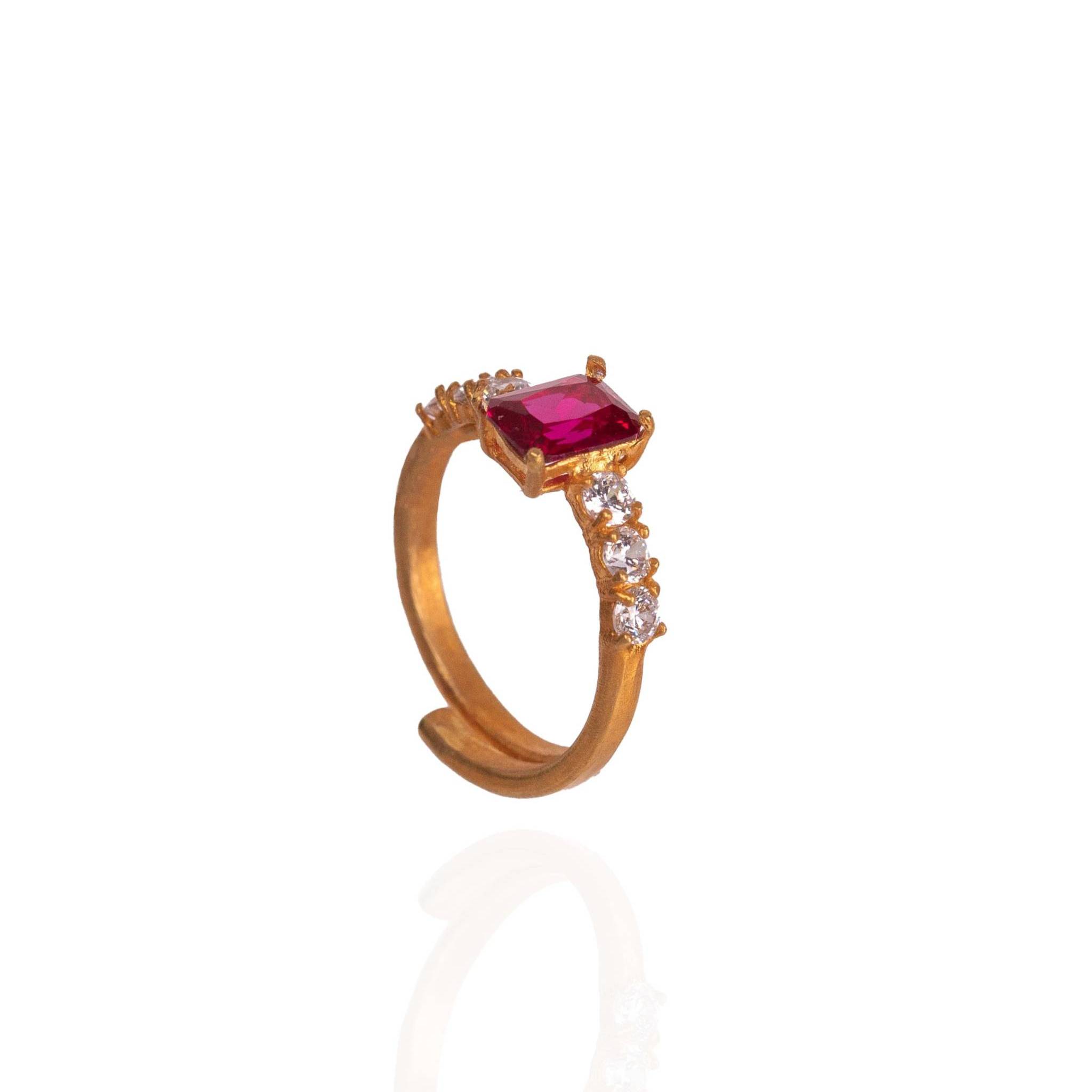 Anel em prata 925 com banho de ouro 24k e zircónias