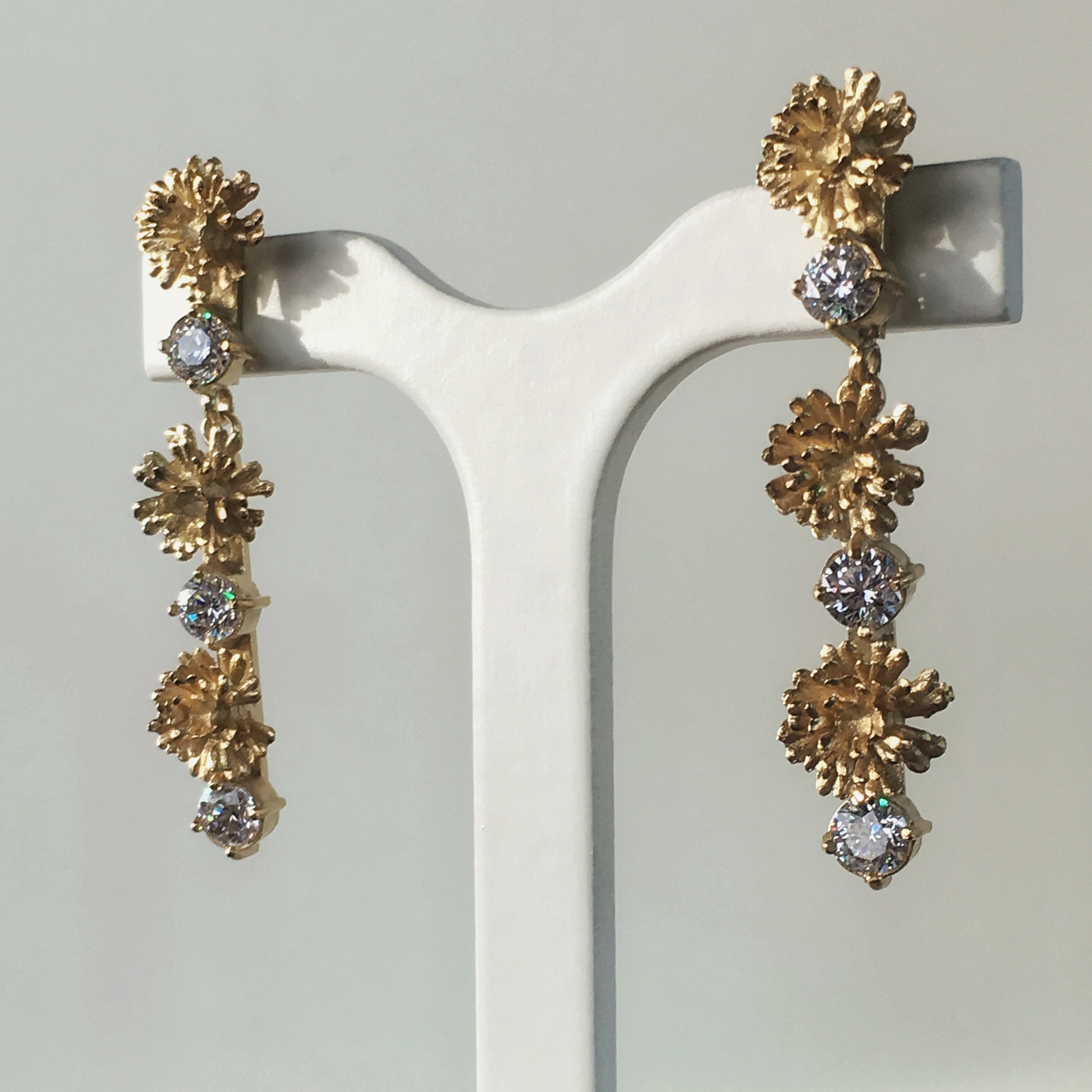 Pequeñas flores intercaladas con circonitas resaltan la plata dorada y la textura del metal, una joya inolvidable